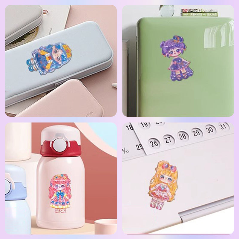 DESIGN LUMINOSO, VIBRANTE E VERSATILE: i pezzi magnetici rivestiti al laser con colori brillanti e vivaci offrono un impatto visivo accattivante. Questi adesivi versatili possono essere attaccati a superfici come frigoriferi, astucci o thermos per un divertimento in movimento.