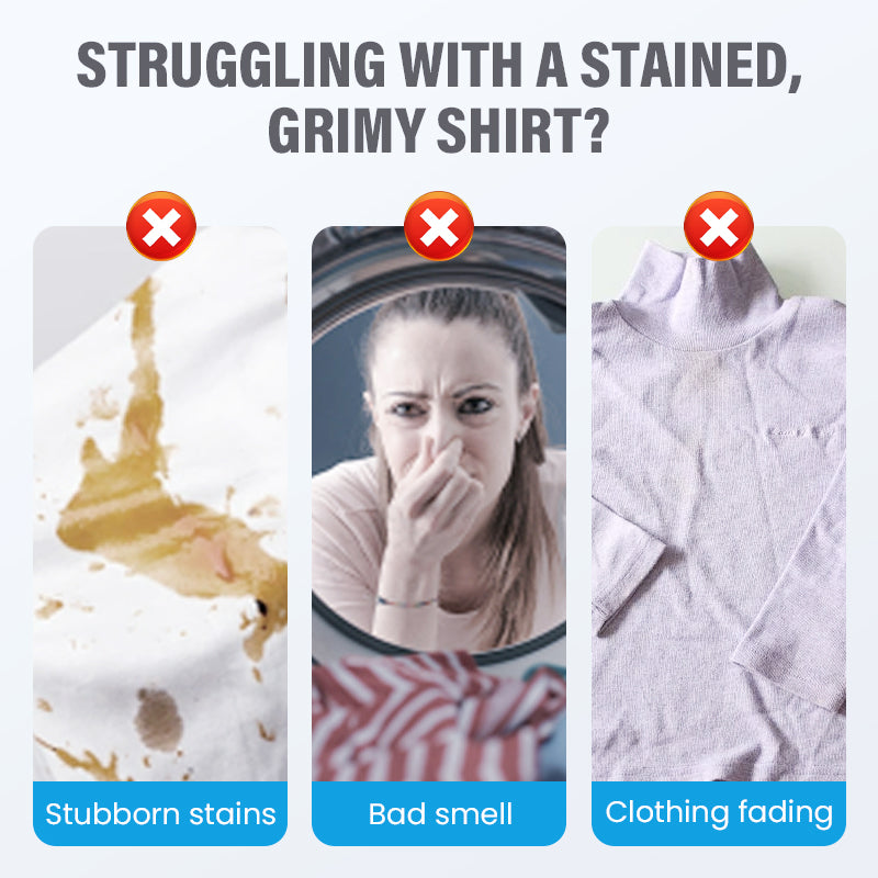 • Le macchie ostinate (fango, cibo, sudore) si attaccano ai vestiti, indipendentemente dal numero di lavaggi? 🧺❌