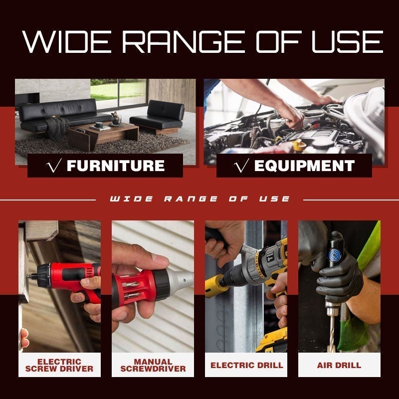 - Adatto per avvitatori elettrici, avvitatori manuali, trapani elettrici e trapani pneumatici. Ideale per lavorare su moto, biciclette e mobili per una facile riparazione e smontaggio di mobili e attrezzature.